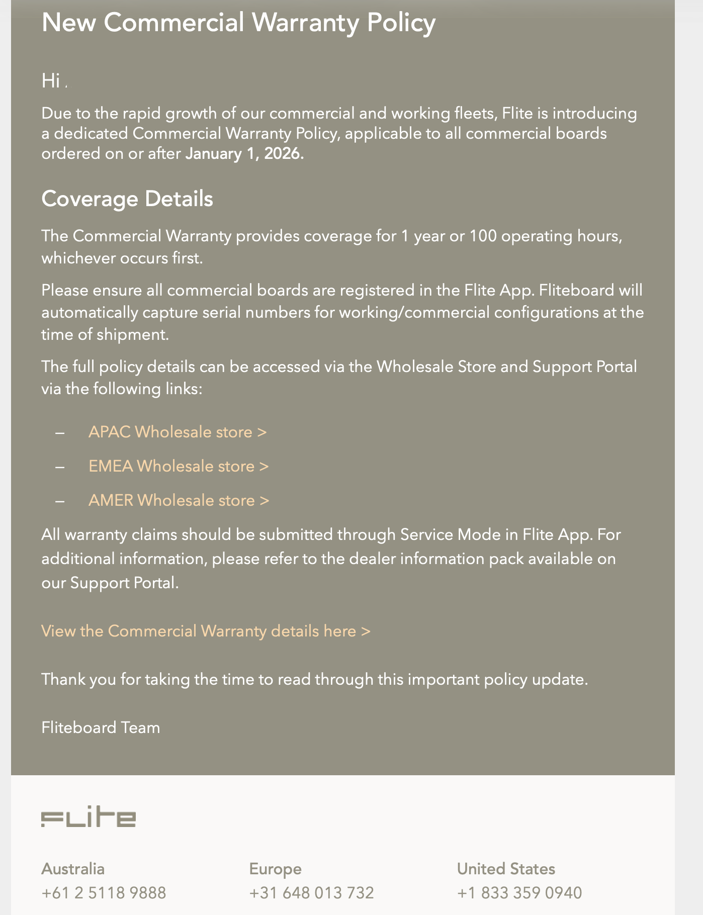 Has anyone else received the recent notification from Flite regarding their new Commercial Warranty Policy?